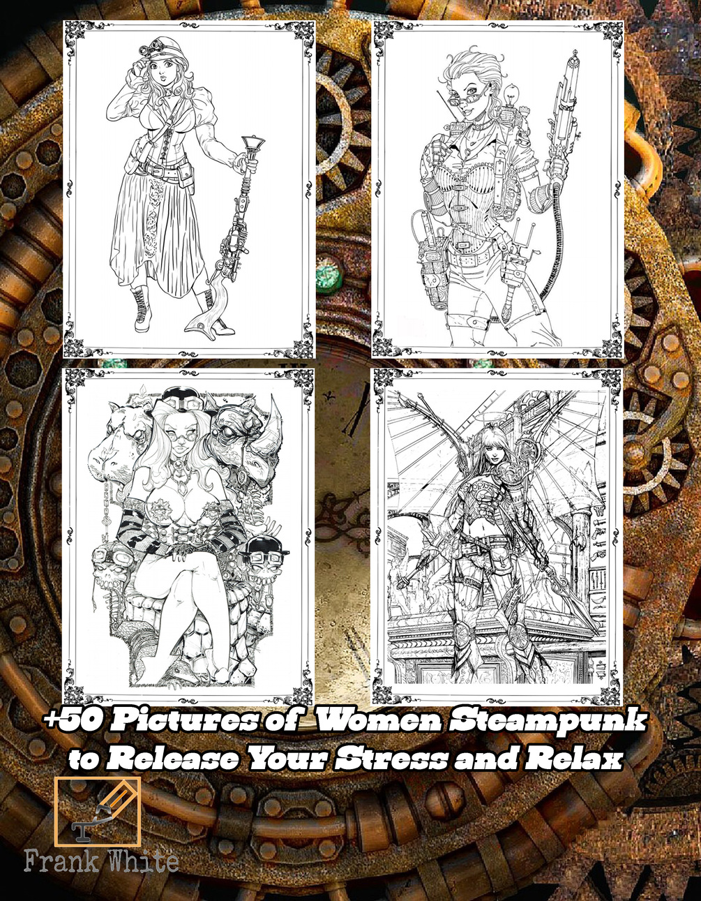 Ebook for Steampunk lovers! Steampunk style women coloring pages.